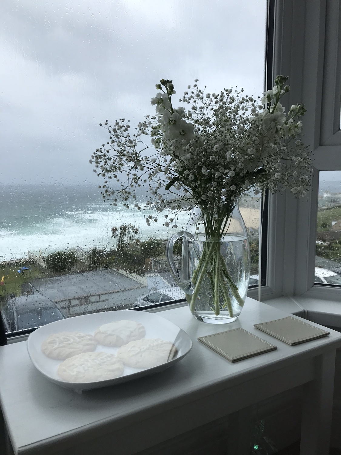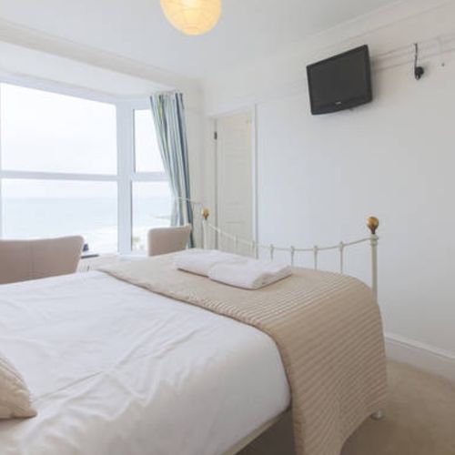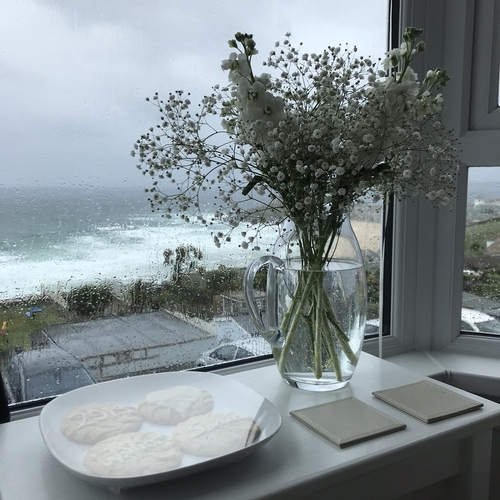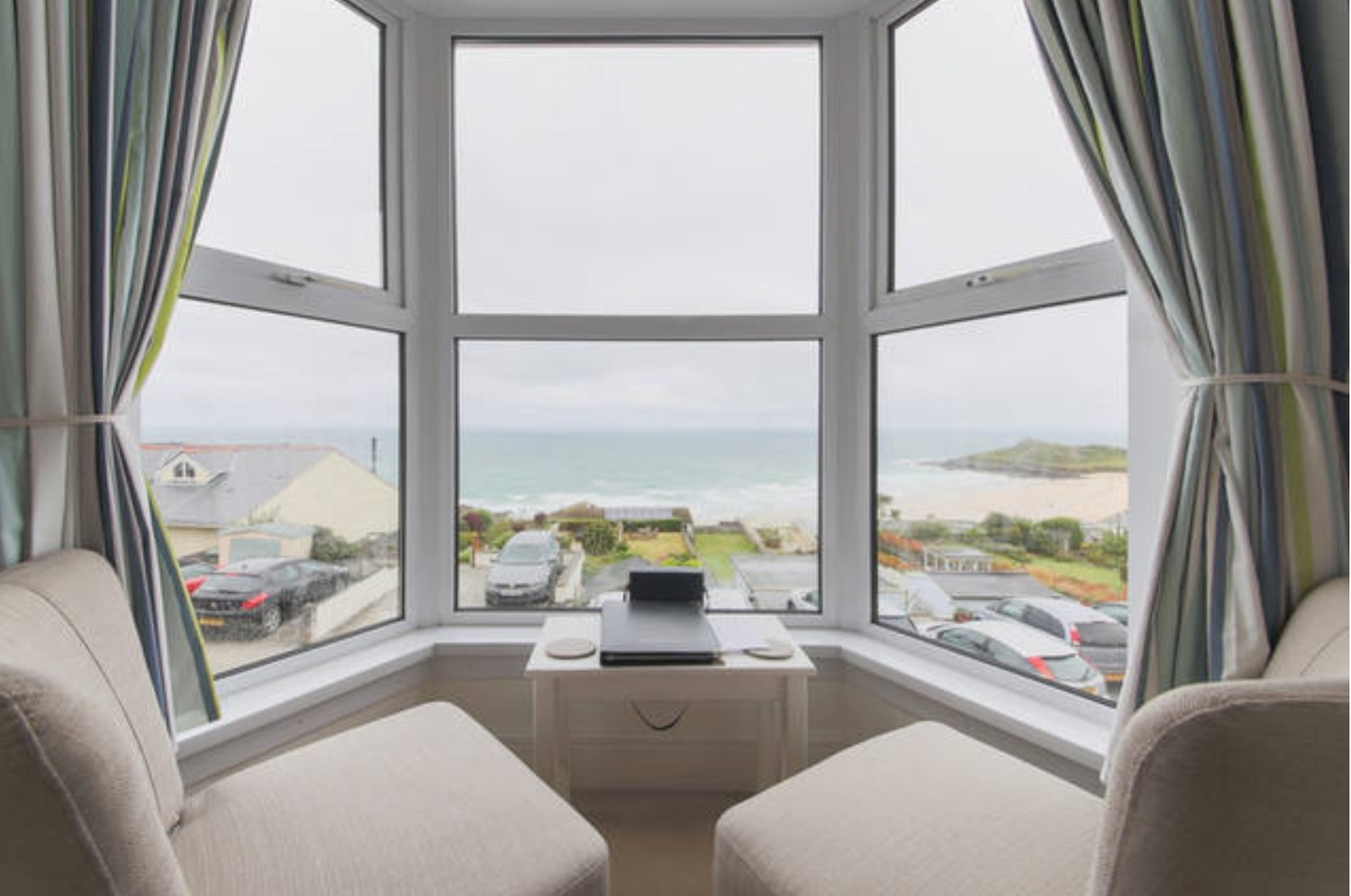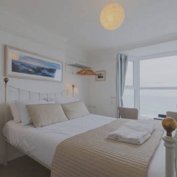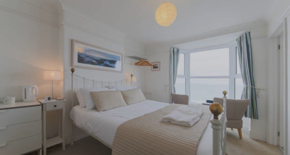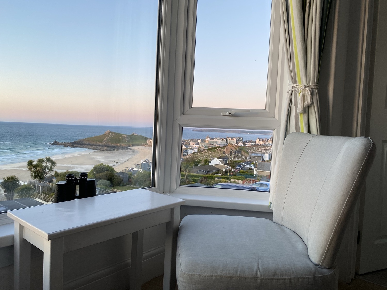 'Porthcurno' has uninterrupted panoramic views over Porthmeor Beach and has been designed with this in mind allowing you to relax in the seating area in the bay window or watch the Atlantic waves roll in from the comfort of your bed.